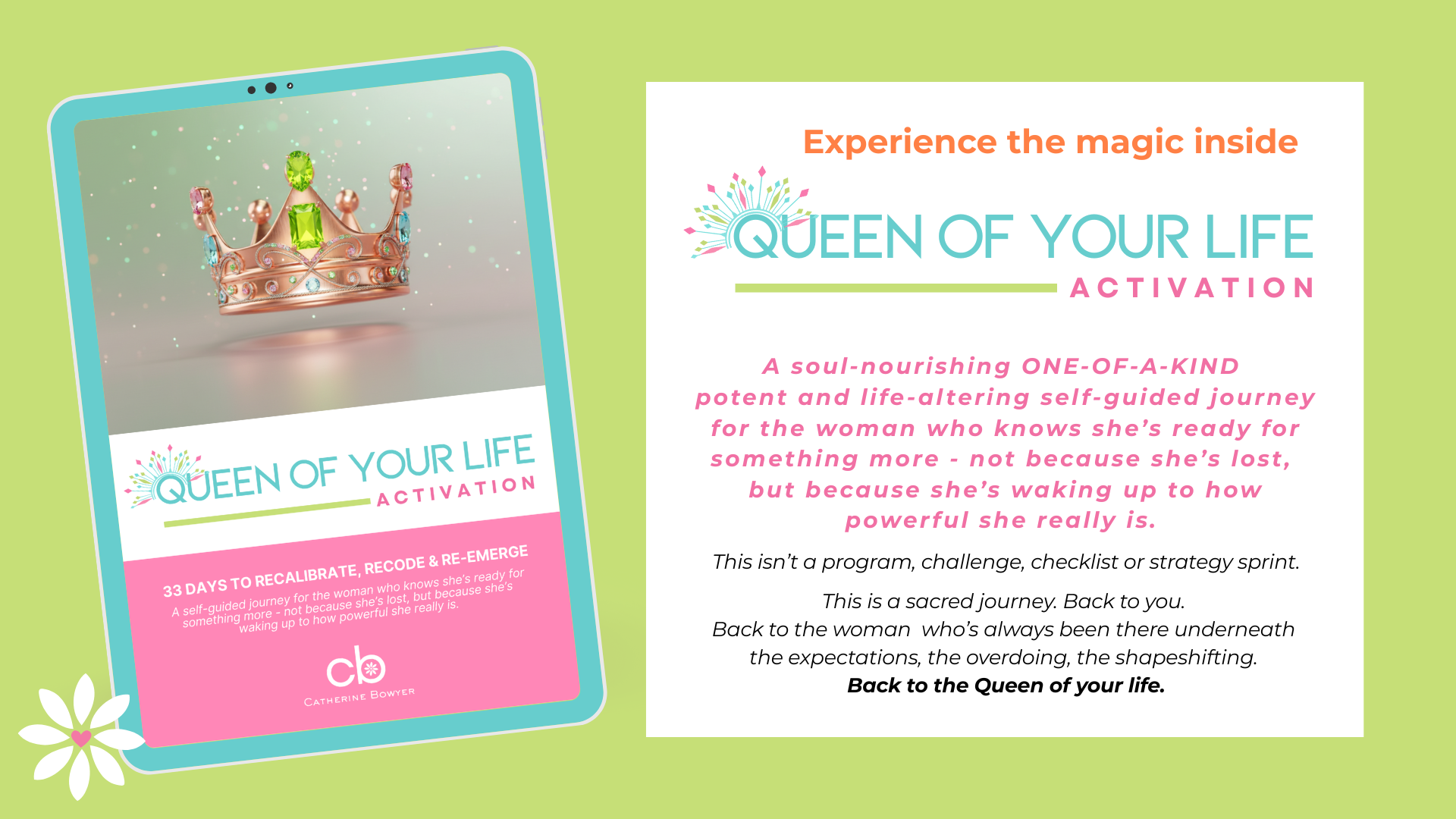 The Queen of Your Life Activation isn’t a mindset hack or another feel-good idea to skim and forget. It’s a full-body, soul-deep shift that walks you - day by day, over 33 powerful days - through a recalibration of how you see yourself, how you honour yourself, and how you show up for your one incredible life.